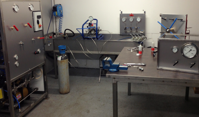 HPP dispose d'un atelier avec bancs de test hydraulique pour équipements haute et très haute pression (jusqu'à 4000 Bar) pour l'intégration de systèmes.